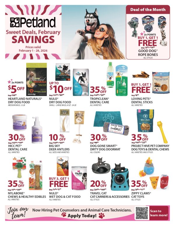 We have specials for all types of pets. Come on in and start saving today!